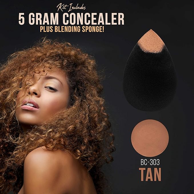 - 3 Free Bonus Items: A 5 gram jar of Belloccio's tan shade concealer along with an egg shaped makeup blending sponge to apply it, plus a 1 oz. bottle of Belloccio's airbrush makeup finishing and setting spray.