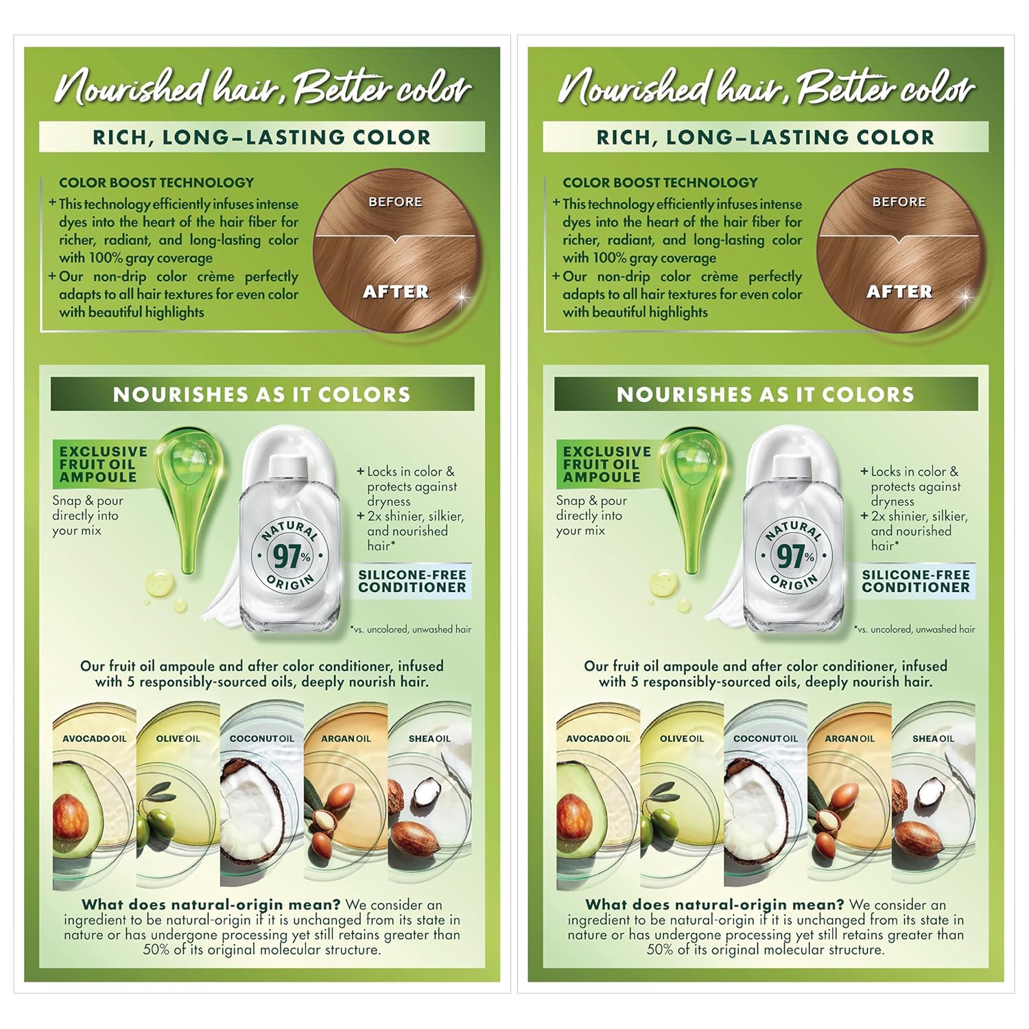 - Hair Dye Kit: The only hair color with a separate fruit oil ampoule that you snap & pour directly into the mix; Follow hair dye with our after color hair conditioner, infused with a blend of 5 fruit oils: avocado, olive, shea, argan & coconut oil
