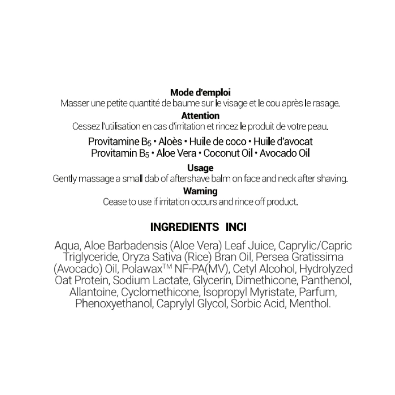 - NOURISH YOUR SKIN. The oils used in this after shave balm are Avocado Oil, Rice Bran Oil and Coconut Oil and they are packed with other skin foods.