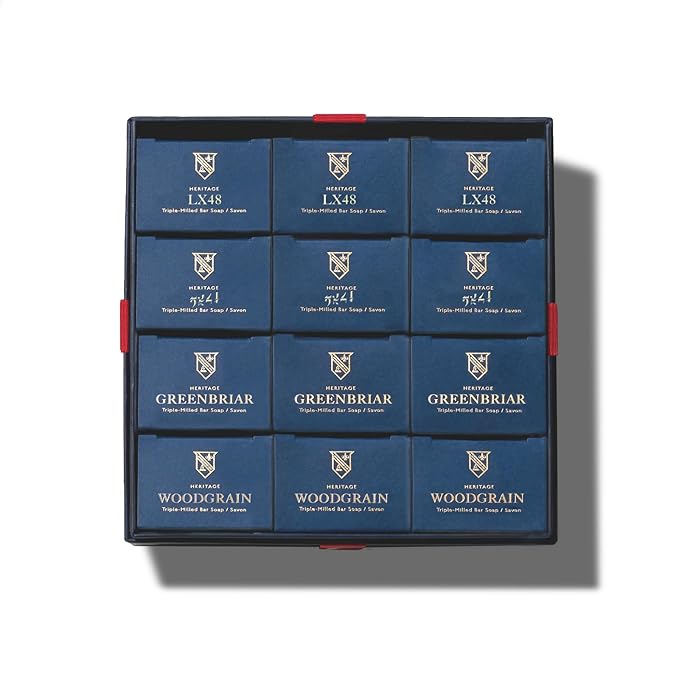- Four Timeless Fragrances: Discover the sophistication of the Heritage Collection featuring LX48, 2571, Greenbriar, and Woodgrain—three bars of each iconic scent.
