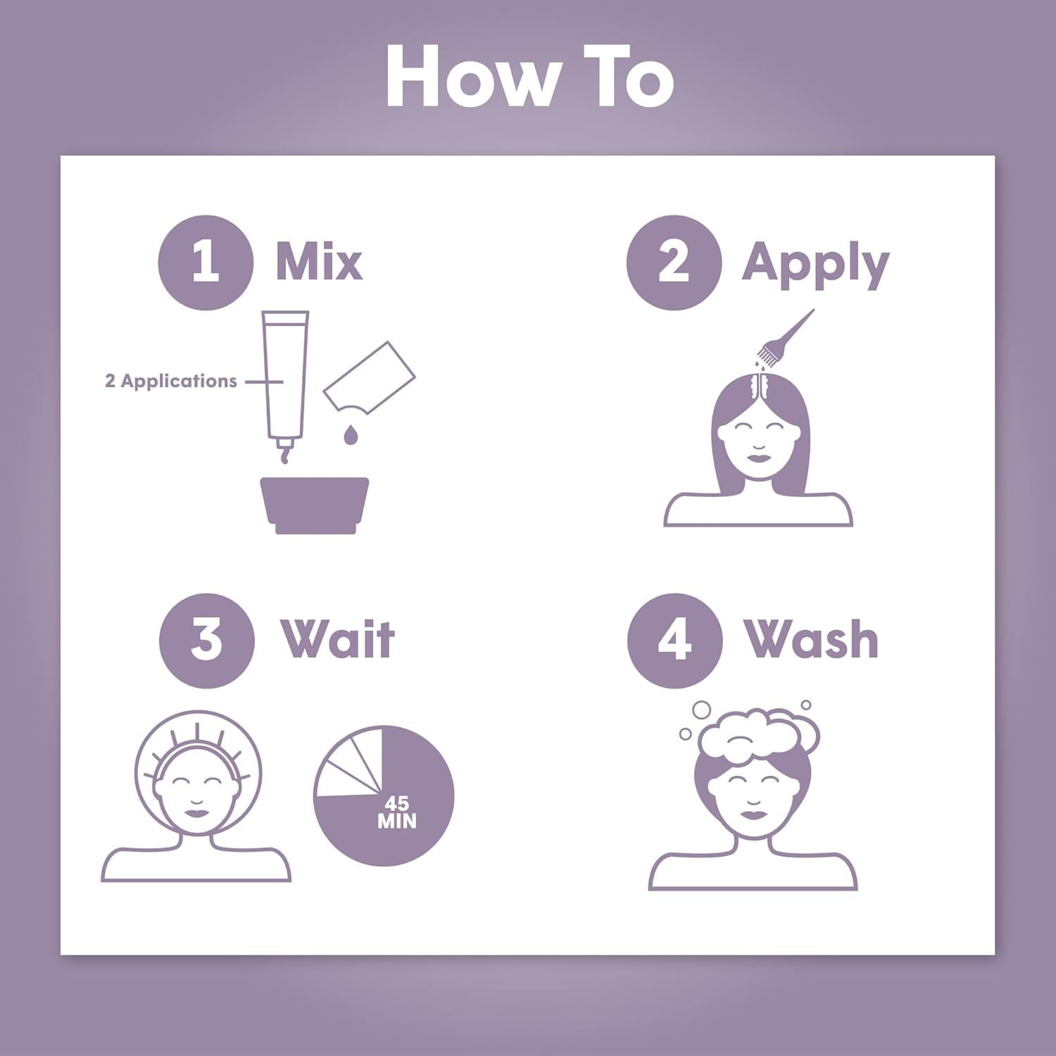 - ​​WHAT’S INCLUDED - Everything you need for two applications: permanent hair color, developer color activator, mixing bowl (2), gloves (2), processing cap (2), hair color applicator brush, and Color Fresh Shampoo & Conditioner samples.