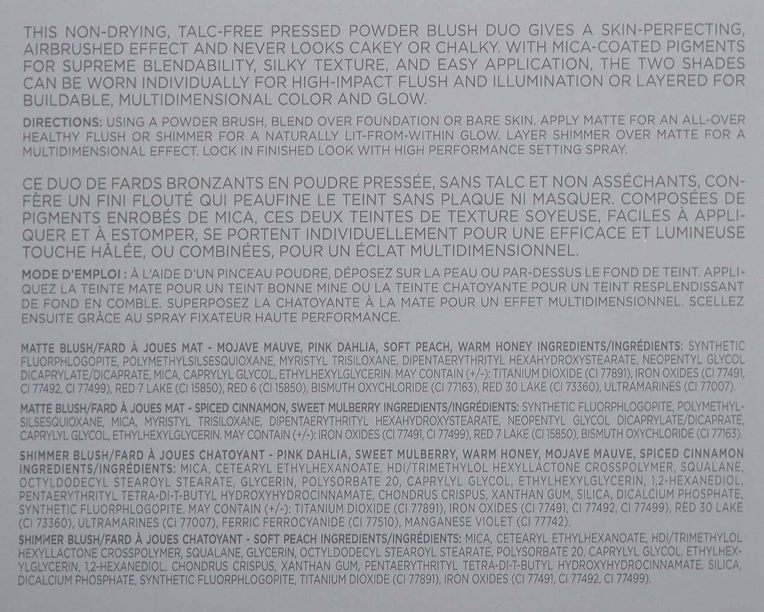 - THE PERFECT BLUSH DUO: Discover this matte and shimmer blush duo to illuminate and sculpt your face, now available in a dusty mauve shade for all skin tones.