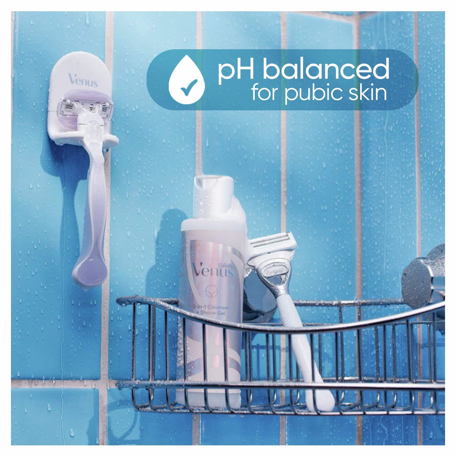 Gillette Venus for Pubic Hair and Skin, 1 Razor Handle + 2 Blade Refills, 2-in-1 Cleanser + Shave Gel and Daily Soothing Serum