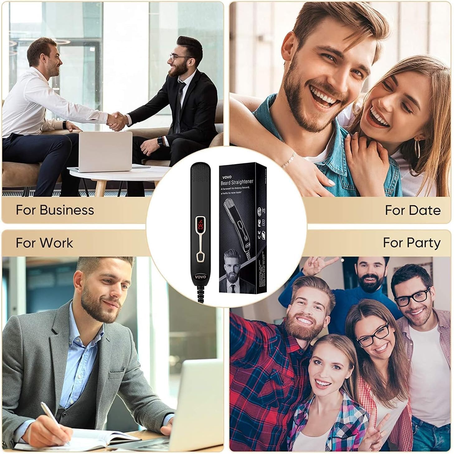 VOVO Beard Straightener Comb Upgrade Professional 2 in 1 Men's Beard Straightening Heated Hair Straightening Brush Portable Anti-Burn 6 Temperature Adjustable with LED Display for Home and Travel