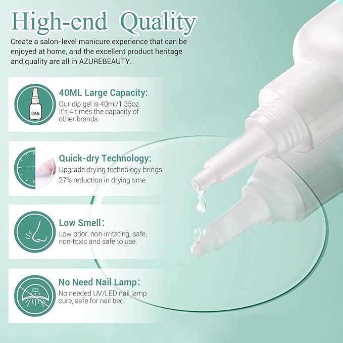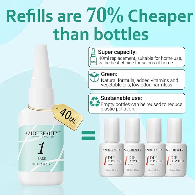 - ★ Ideal Gifts & Trusted Brands: AZUREBEAUTY nail dip super capacity Base Coat with more advanced and Ideal gift for your sister, mom, and friends. # Note: According to different skin symptoms, it should be tested before use to check if there is any reaction.#