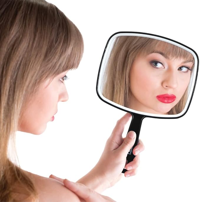 - Handheld Mirror: Features a long, comfortable grip handle and large square face.