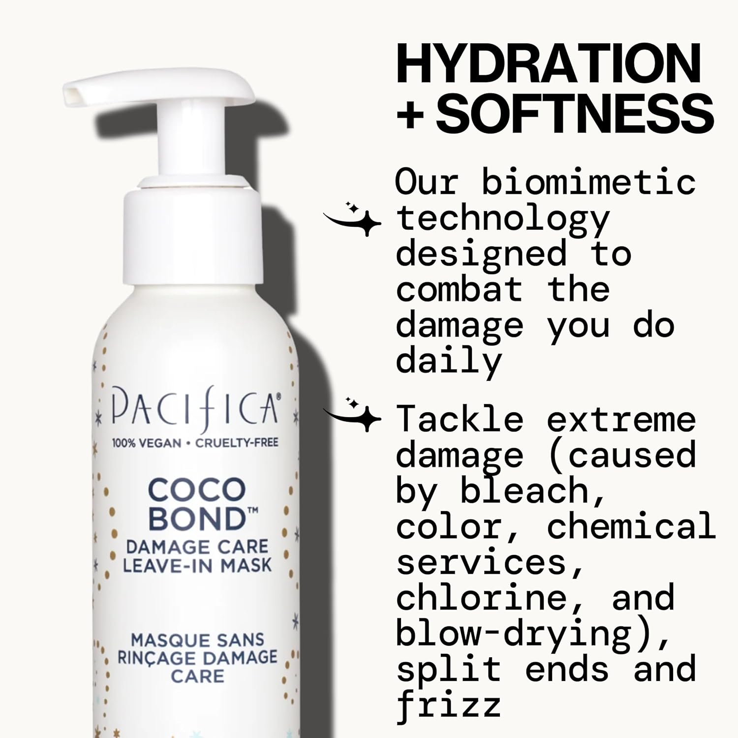 PACIFICA Beauty, Coco Bond Damage Care Leave-In Repair Mask Treatment, Dry & Damaged Hair from Bleach, Color, Chemical Services, Chlorine, & Heat, Coconut, Vegan