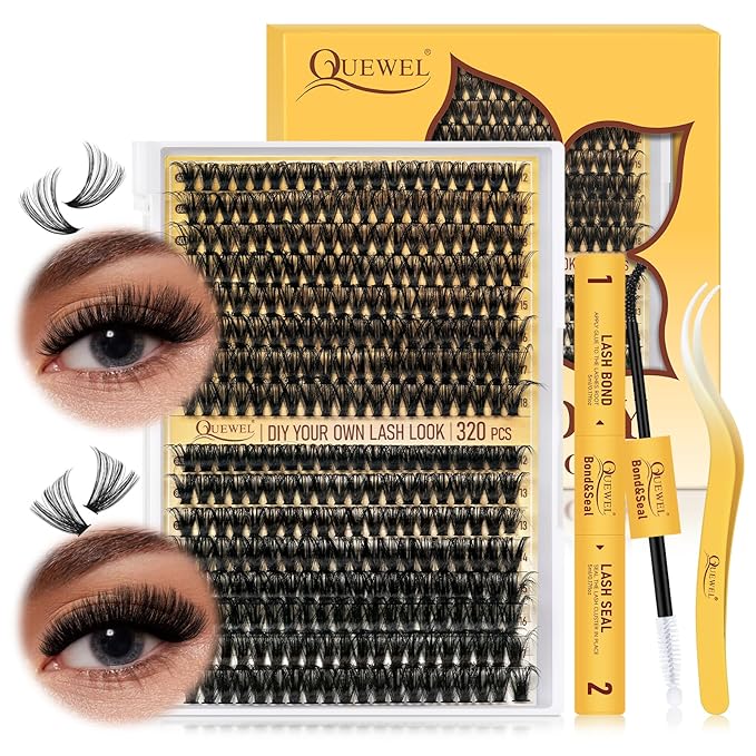 - Lash Clusters Kit: QUEWEL cluster eyelash extensions kit includes 320Pcs 60D+80D lash clusters, 1*10ML lash bond and seal, 1* lash tweezers. This eyelash clusters kit can meet your needs for DIY eyelash clusters kit at home. Everyone can enjoy the effect of a professional salon at home, which helps you save a lot of time and costs.