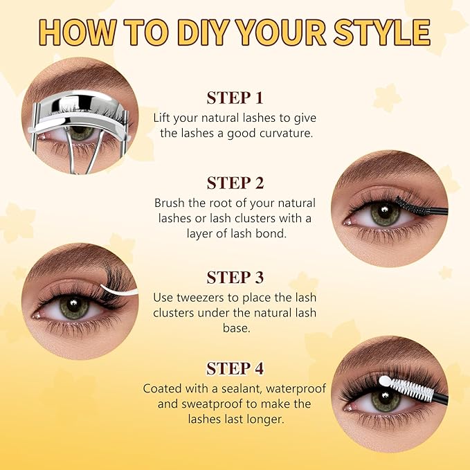 - 60D+80D 3D Lash Clusters: QUEWEL 60D+80D lashes clusters mix length 12-18mm D Curl eyelash clusters are more 3D. The 3D 3D DIY lash extension kit will provide seamlessly blended results with your natural lashes, making your eyes look fuller and more attractive, creating a glamorous effect.