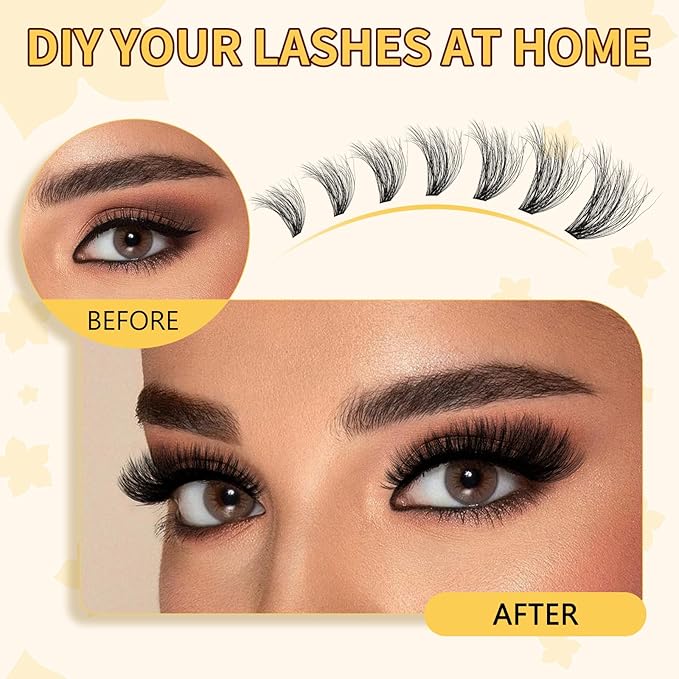 - Lash Clusters Kit: QUEWEL cluster eyelash extensions kit includes 320Pcs 60D+80D lash clusters, 1*10ML lash bond and seal, 1* lash tweezer. This lash clusters kit can meet your needs for DIY cluster eyelash extensions at home. Everyone can enjoy the effect of a professional salon at home, which helps you save a lot of time and costs.