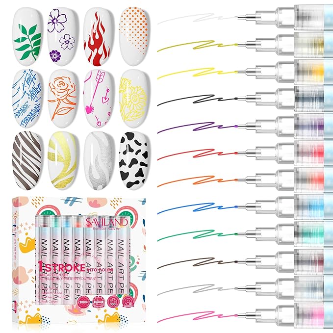 - DIY Any Nail Patterns: Use saviland colorful nail pens for nail art to create endless nail designs, from dots to stripes, letters, detailed paintings, French nails and more. Express your style whether at home or in professional nail salons and elevate your nail art game with our nail art tools that empower endless nail art possibilities.