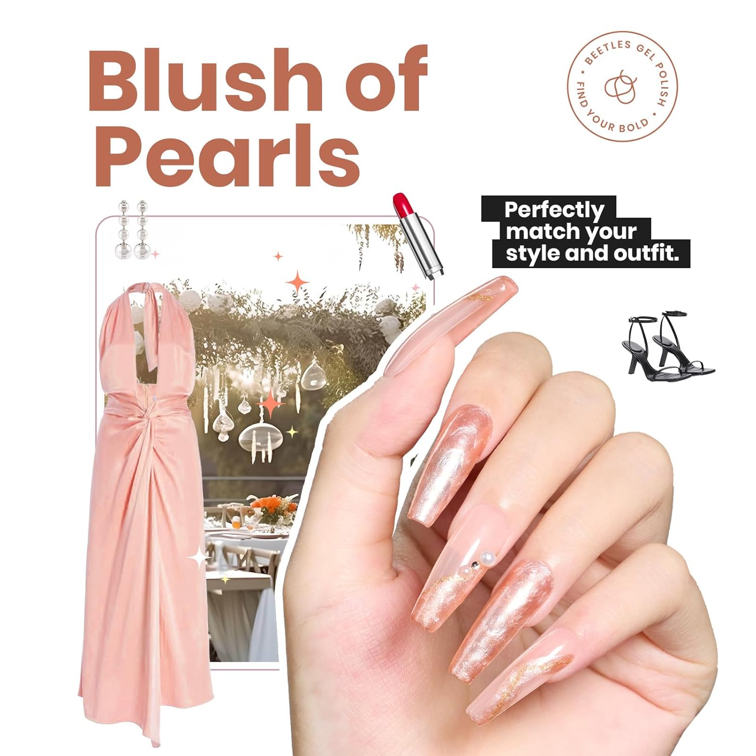 Beetles Pearl Nail Polish, 15ml Blush of Pearls Nail Polish, Champagne Pearl Color Fast Drying & Long Lasting Nail Lacquer Shimmer Art Effect for DIY Nail Salon-Quality Results