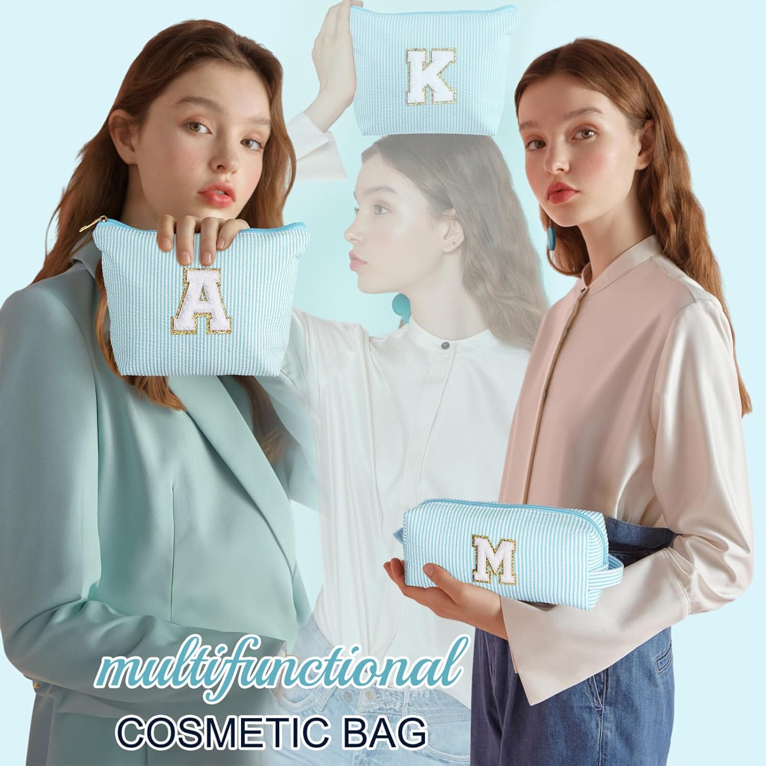 YOOLIFE Initial Makeup Bag for Women - Teen Girl Gifts Trendy Stuff Monogram Cute Makeup Bags Make Up Case for Women Her Best Friend Friendship Sister Teacher, Personalized Birthday Gifts I