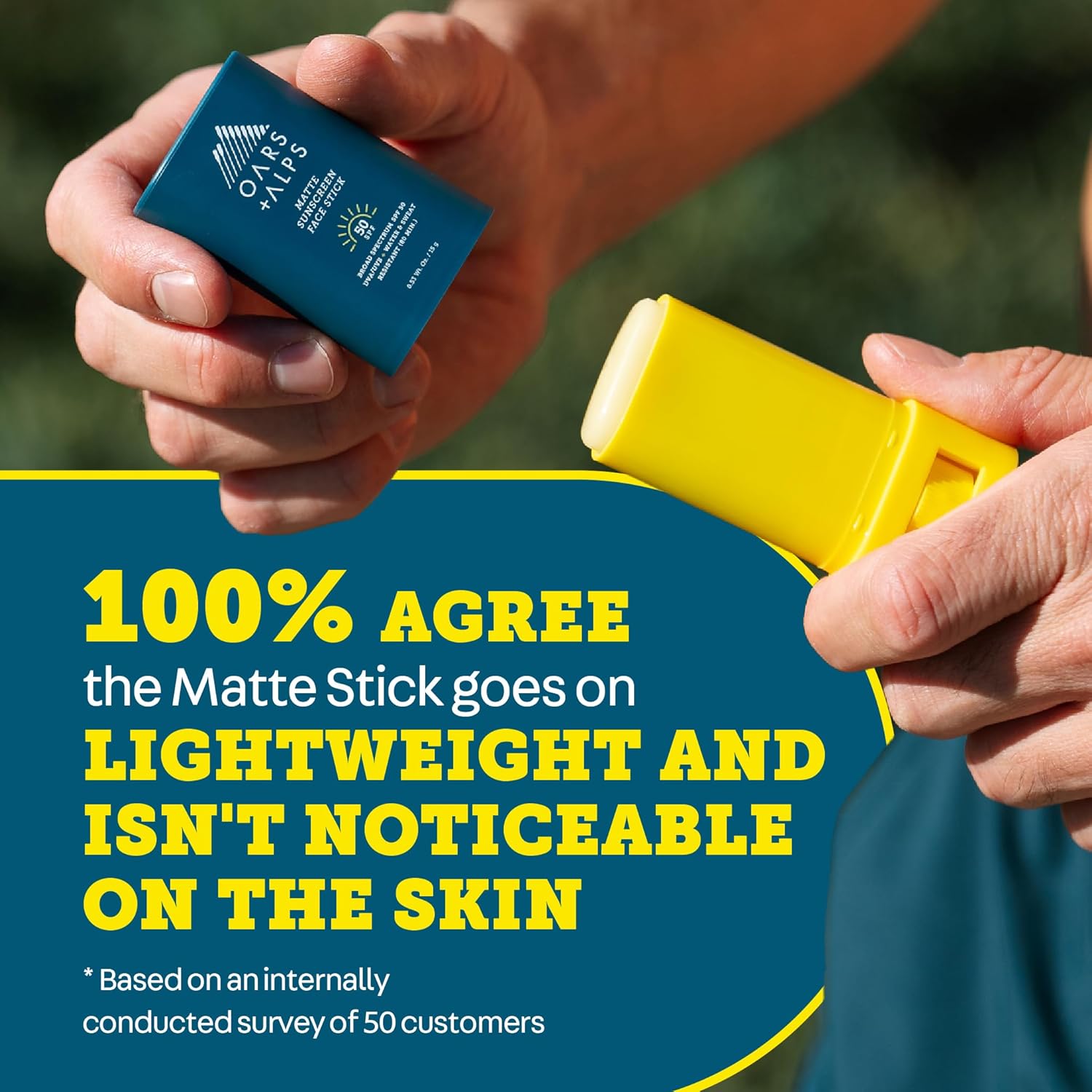 - Goes On Without A Trace: Experience non-shiny, non-sticky, and lightweight application with Oars + Alps SPF 50 Matte Sunscreen Stick, perfect for active days on the move. Broad spectrum SPF 50 UVA / UVB protection.