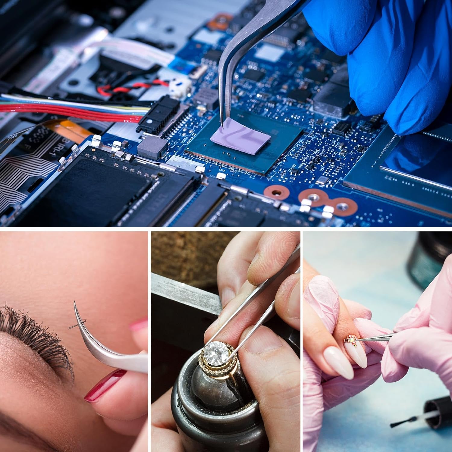 - 4. Multi-Purpose Tweezer - Fine tip curved tweezers for holding tiny components, handicrafts, jewelry, beauty workshops, as well as experimental work, jewelry and other fine crafts. which can repair or soldering circuit boards, computer motherboards, digital products, precision equipment.