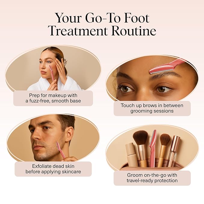 - YOUTHFUL GLOW & SMOOTHER COMPLEXION – Regular use of these face razors for women helps refine skin texture, minimize the look of pores, and soften the appearance of fine lines—leaving your skin feeling smooth, refreshed, and radiant.