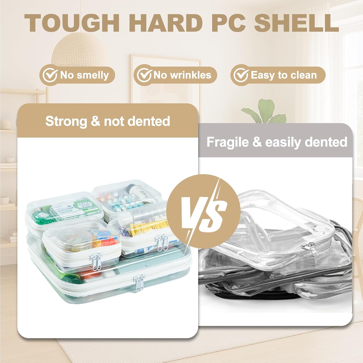 - Crush-Resistant and Travel-Ready The hard shell cases protect your items from pressure or drops, keeping delicate contents safe. Whether you’re commuting or traveling, these clear zipper bags are built to withstand the journey.