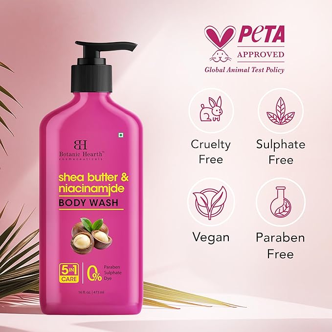 Botanic Hearth Shea Butter & Niacinamide Body Wash – Deeply Nourishing & Renewing Hydrating Shower Gel, Gentle Cleanser, Sulfate & Paraben Free – 16 fl oz