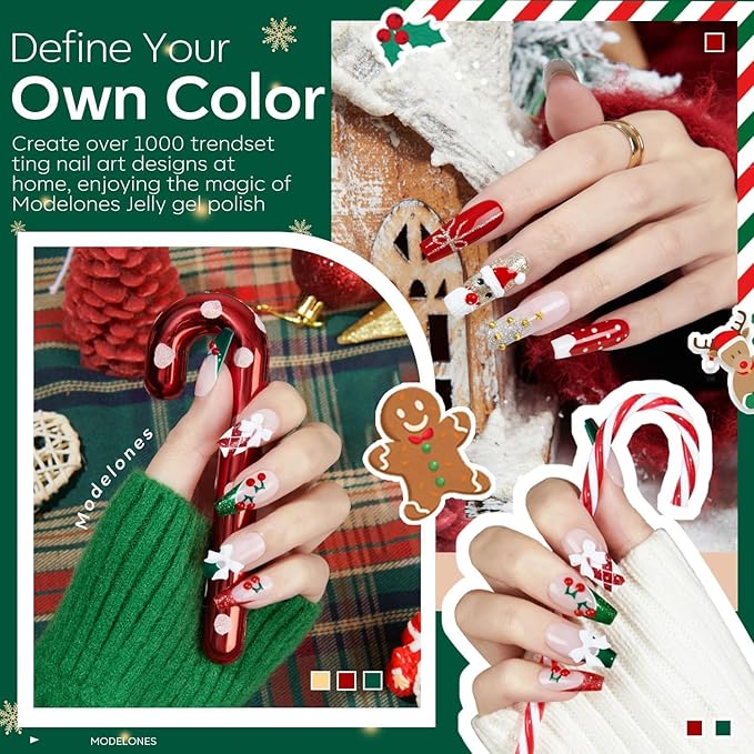 - Nail-friendly Formula : Modelones Red Green Glitter Gel Polish Set is composed of 11 non-toxic & vegetarian. Rich in natural resin and No irritating ingredients, making your nail bed safer & preventing nail chipping, breakage, yellowing