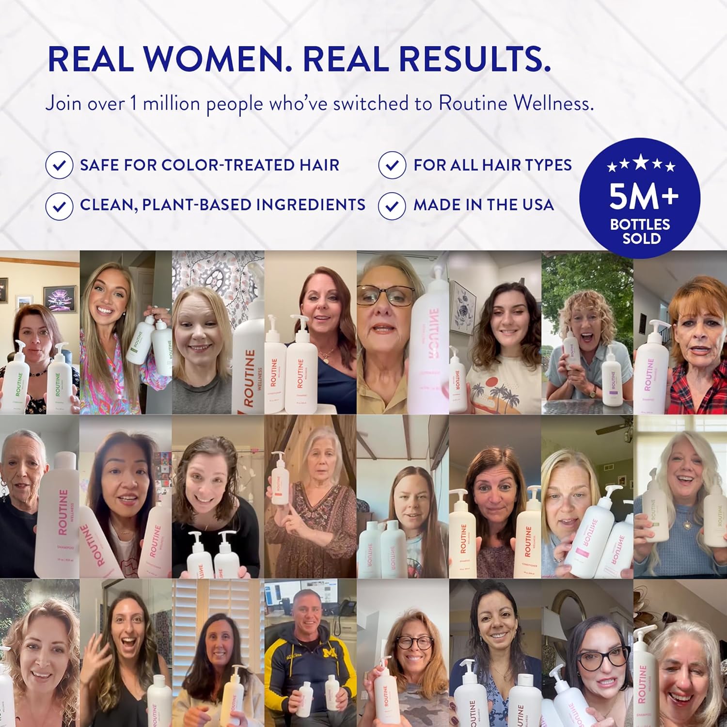 - CLINICALLY TESTED FOR THINNING HAIR - Looking for a solution for thinning hair or hair loss? Our Routine Wellness Shampoo & Conditioner for women are clinically shown to strengthen hair and visibly reduce hair thinning caused by breakage. Powered by pea peptides, black seed oil, and biotin, they help support healthier, fuller-looking hair from root to tip.
