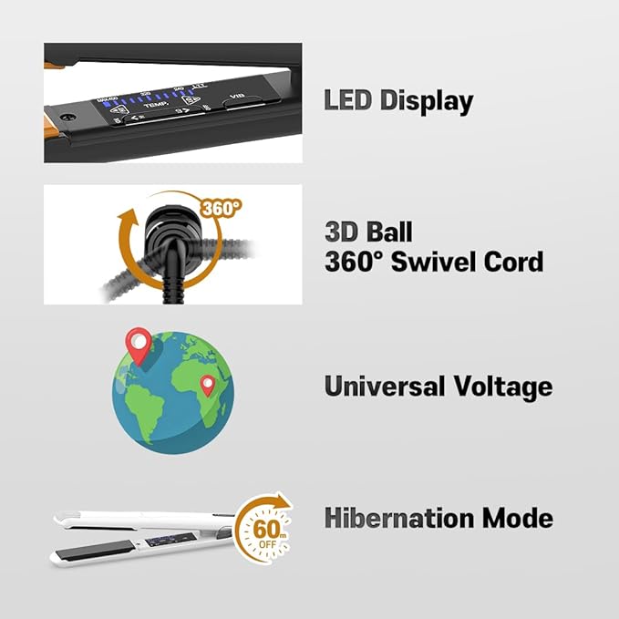- [Effortless Styling, Any Angle, Anywhere] – Equipped with a 10-ft cord, 3D swivel joint, and dual voltage (100–240V), this tool lets you style freely and comfortably, wherever you are