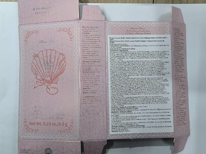 Flower Knows Shell's Jewel 6-Color Makeup Palette,Pink Blue Face Makeup Palette with 4 Matte + 2 Shimmer Shades,Blendable Smooth Cute Make Up,0.23 Oz(02 Mermaid's Tears)