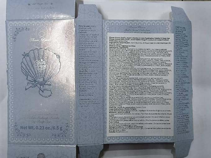 Flower Knows Shell's Jewel 6-Color Makeup Palette,Smoke Greys Eyeshadow Palette with 4 Matte + 2 Shimmer Shades,Blendable Smooth Cute Make Up,0.23 Oz(03 Deep Sea)