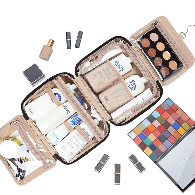 - MULTIFUNCTIONAL COMPARTMENTS - Fully open with a transparent design that gives you a comprehensive glimpse of your stuff. Four different compartments keep your toiletries in place, and a front zipper pocket provides additional storage with convenience
