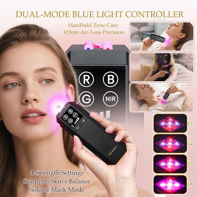 - The detachable handheld controller features targeted blue light to help balance oil-prone zones and refine skin texture on areas like the chin or neck. Use it alone for on-the-spot care or together with the full red light therapy mask. A versatile red light therapy device for face that enables personalized treatment anytime, anywhere.