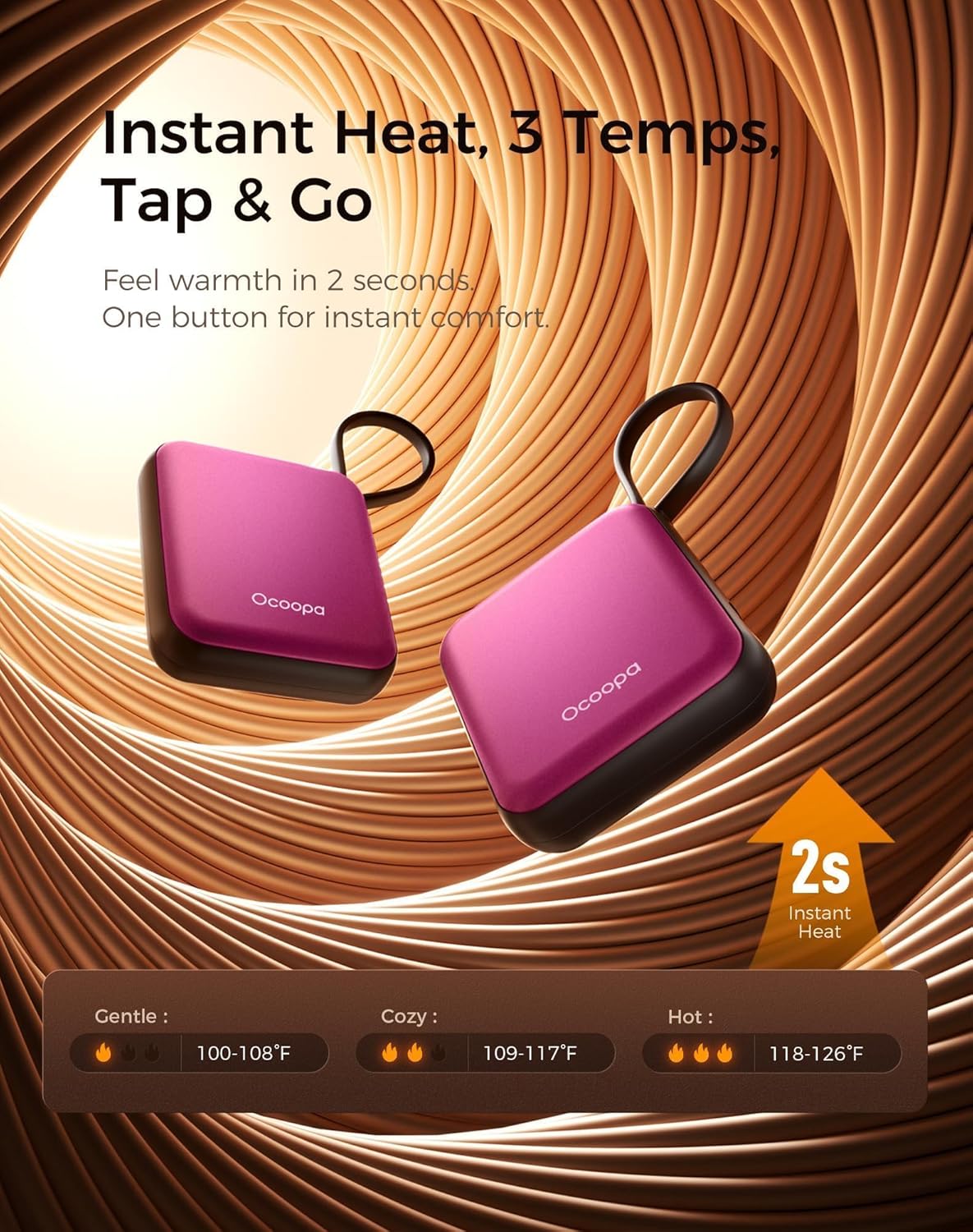 - Instant Heat in 2 Seconds: activate and warm up immediately. 3 adjustable temperatures to match your preferences — from gentle warmth to deep heat.