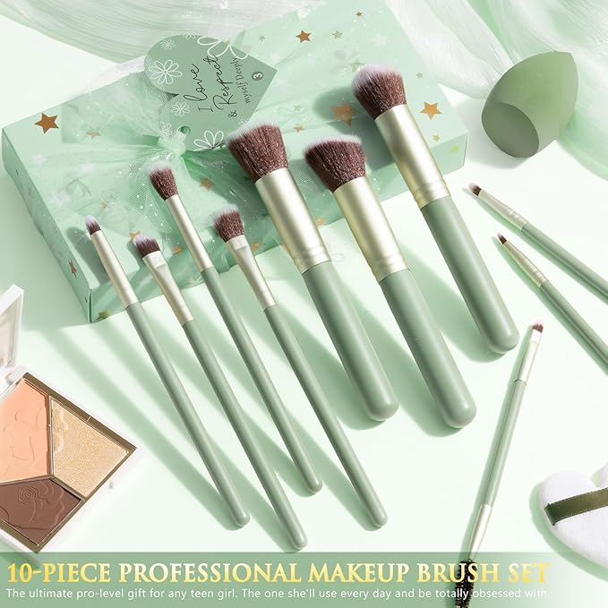 - 10PCS TWEEN GIRLS TREND STUFF: This birthday makeup girls gift including 10 Makeup Brushes, Floral print Makeup Bag, 11 Makeup Sponges with Bottle, Headband, Dual Wristbands, 3 Flower Hair Clips, 24 PCS Press On Nails with Polish Strip & Glue, 6 Lip Gloss Set, 25 Color Eyeshadow, 3 in 1 Face Palette, Eyebrow Pencil, Eyeliner, Mascara, Bowknot Ribbon, 10 Affirmation Cards & Task Tags. These teen girl gifts trendy stuff cover from makeup tools to cosmetics, more than make up, it's a confidence kit