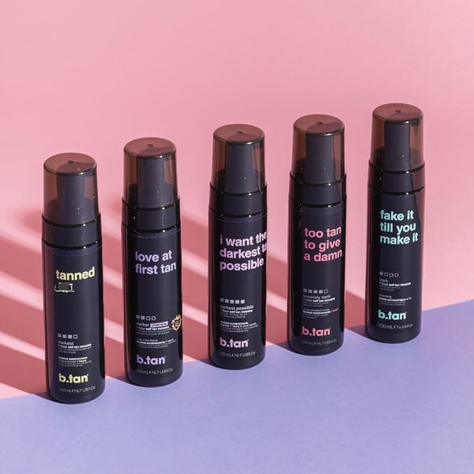 b.tan Dark Self Tanner Gift Box | Anytime Glow Getter Bundle - 2 Pack Sunless Tanning Mousse with Mitt, 1 Hour Express Fake Tan Foam, Best Christmas Stocking Stuffer Fast Bronze, Face & Body