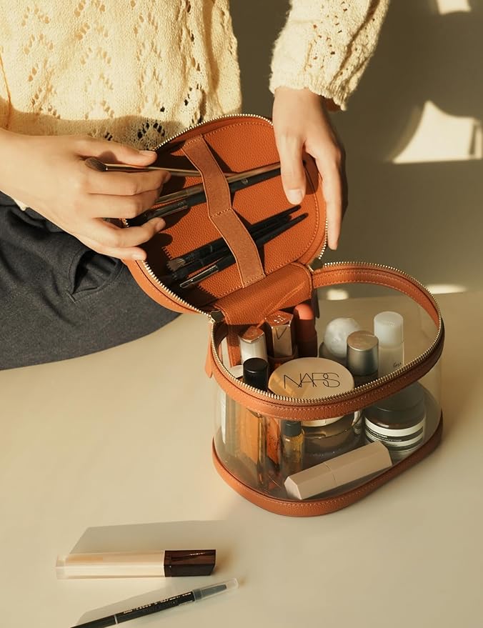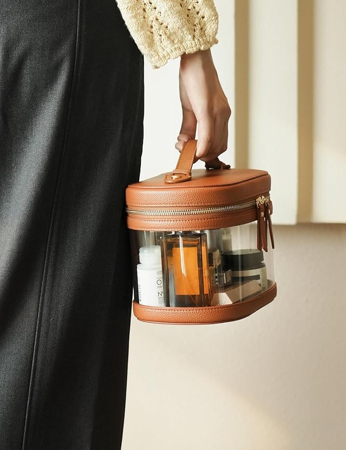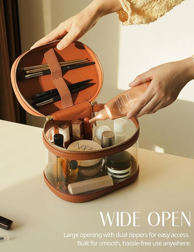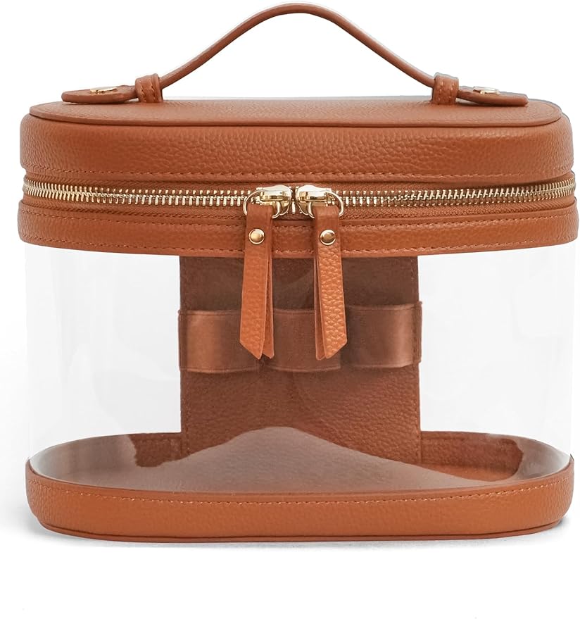 Popvibe Clear Makeup Bag Travel Cosmetic Case Transparent Toiletry Bag with Zipper, Portable Make Up Organizer Traveling Compact Car Bag for Essentials